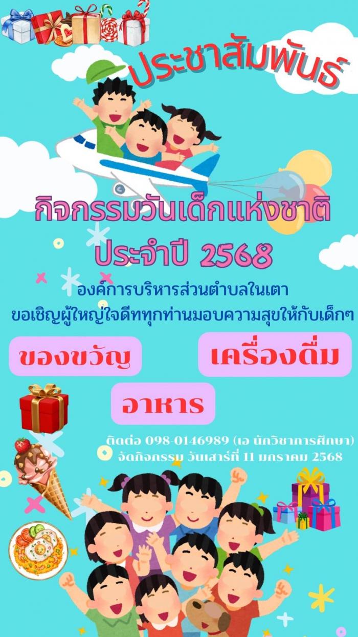 ประชาสัมพันธ์ เรียนเชิญผู้ใหญ่ใจดีทุกท่าน ร่วมสนับสนุนของรางวัล ของขวัญ อาหาร เครื่องดื่ม และทุนการศึกษา เนื่องในวันเด็กแห่งชาติ ประจำปี 2568 ซึ่งทางองค์การบริหารส่วนตำบลในเตาจะจัดกิจกรรมใน