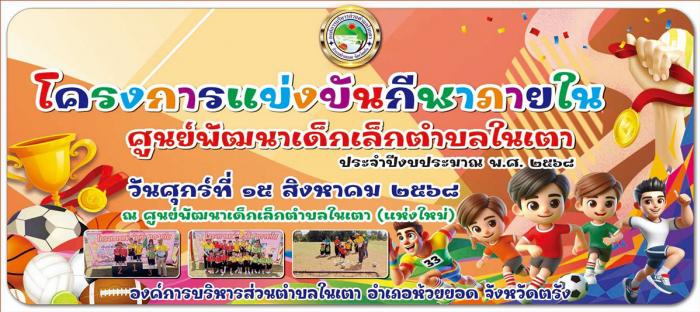 องค์การบริหารส่วนตำบลในเตาขอเรียนเชิญพ่อแม่ พี่น้อง และผู้ปกครองทุกท่าน ร่วมกิจกรรมกีฬาภายในศูนย์พัฒนาเด็กเล็กตำบลในเตา ณ ศูนย์พัฒนาเด็กเล็กตำบลในเตา (แห่งใหม่)วันศุกร์ ที่ 15 สิงหาคม 2568 ตั้งแต่เวลา 07.00 น. เป็นต้นไปค่ะ