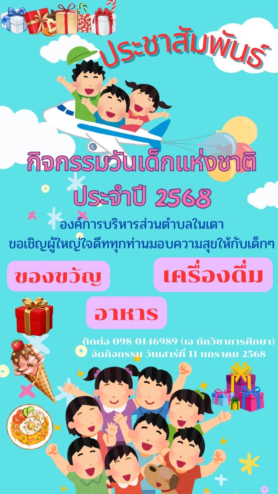 องค์การบริหารส่วนตำบลในเตา ขอเชิญน้องๆ หนูๆ มาร่วมงานวันเด็กแห่งชาติ ประจำปี 2568