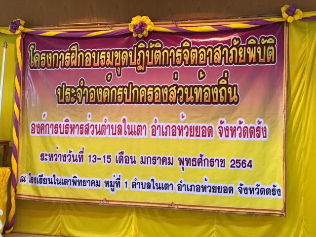 การดำเนินโครงการอบรบชุดปฏิบัติการจิตอาสาภัยพิบัติประจำองค์การบริหารส่วนตำบลในเตา ประจำปี 2564 ระหว่างวันที่ 13-15 มกราคม 2564 ณ โรงเรียนในเตาพิทยาคม
