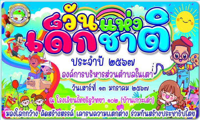 องค์การบริหารส่วนตำบลในเตา ขอเชิญน้องๆหนูๆ มาร่วมงานวันเด็กแห่งชาติ ประจำปี 2567 ในวันเสาร์ที่ 13 มกราคม 2567 เวลา 08.00 น. เป็นต้นไป ณ สนามโรงเรียนไทยรัฐวิทยา102 (บ้านเกาะเต่า) แล้วพบกันนะค่ะกับกิจกร