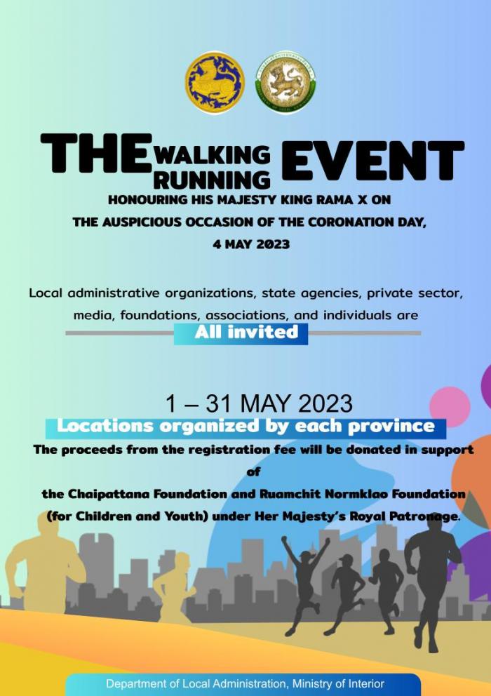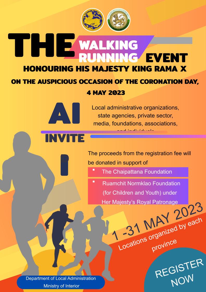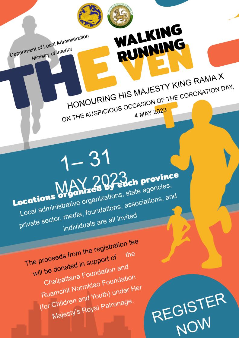 ตัวอย่างสื่อประชาสัมพันธ์โครงการเดิน-วิ่ง เฉลิมพระเกียรติ พระบาทสมเด็จพระเจ้าอยู่หัว เนื่องในวันฉัตรมงคล 4 พฤษภาคม 2566 (ภาษาอังกฤษ)