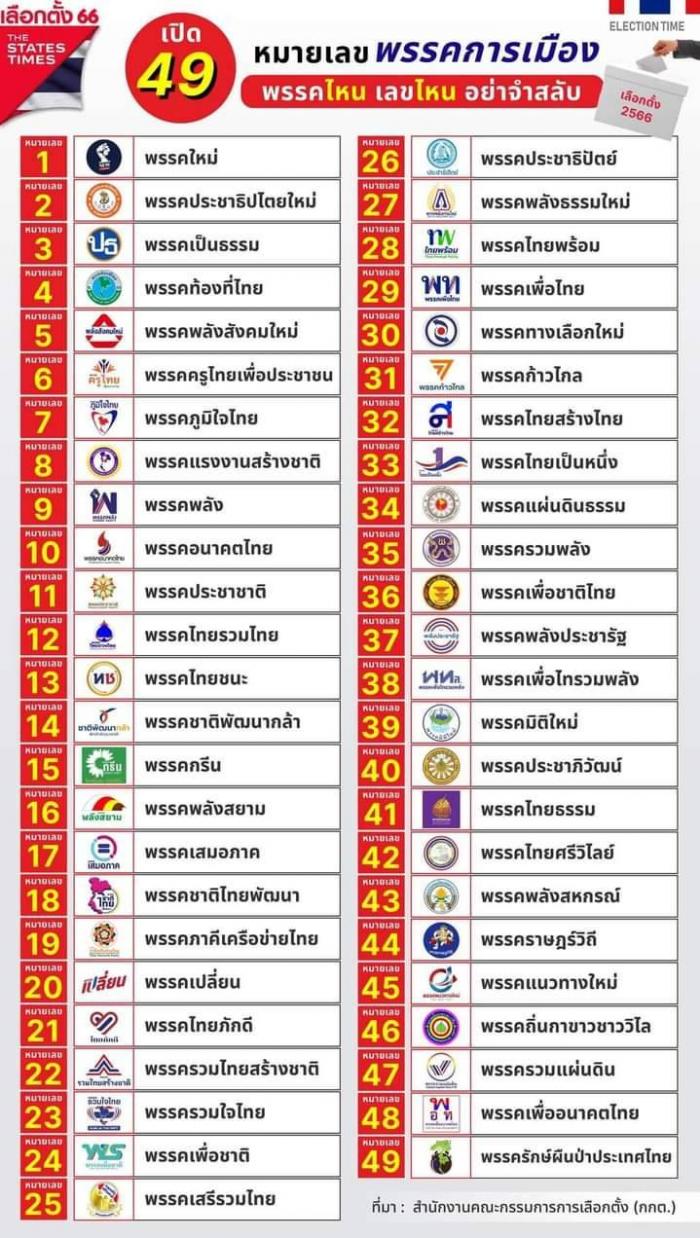 หมายเลขพักการเมือง 49 พรรค พรรคไหน เลขไหน อย่าจำสลับ