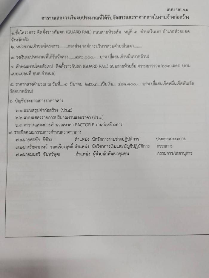 เรื่อง ข้อมูลรายละเอียดค่าใช้จ่ายเกี่ยวกับการจัดซื้อจัดจ้าง ราคากลาง และการคำนวณราคากลาง