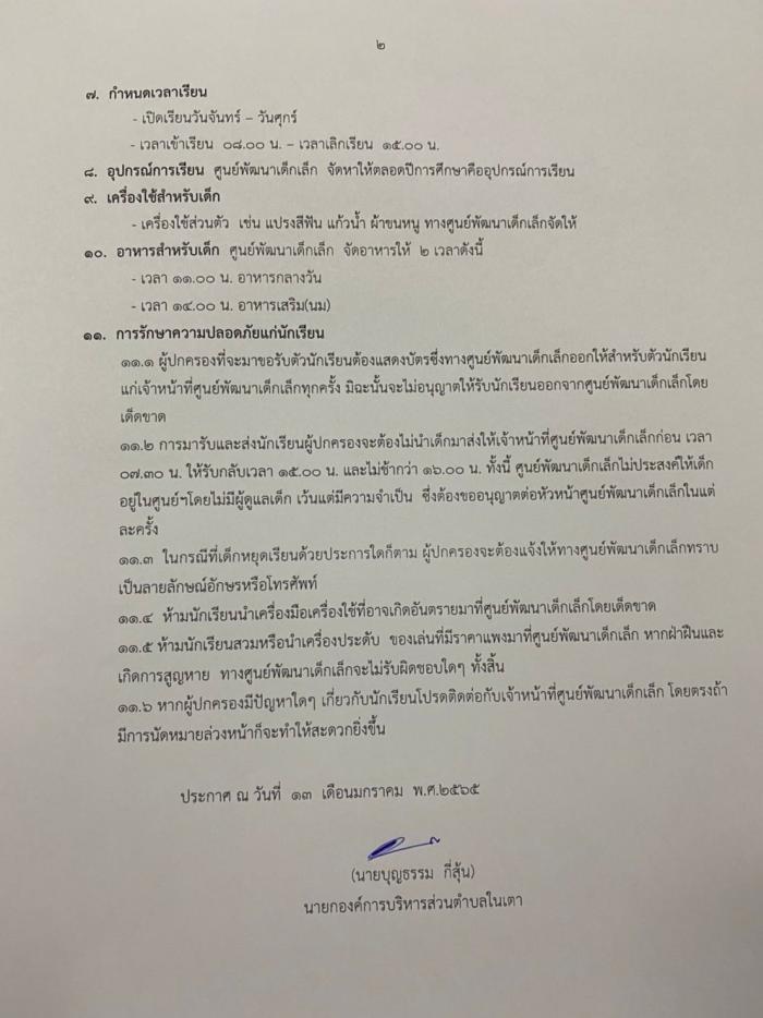 รับสมัครเด็กเล็กเพื่อเข้าเรียนในศูนย์พัฒนาเด็กเล็กตำบลในเตา