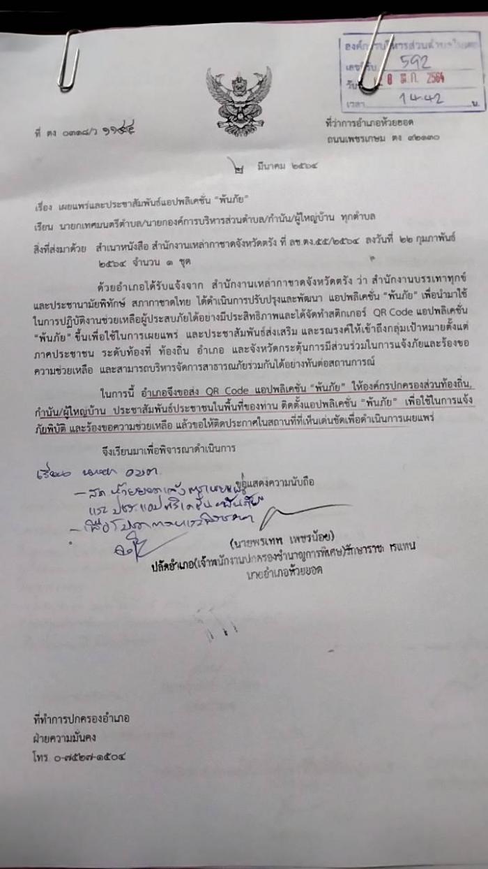 ประชาสัมพันธ์แอปพลิเคชั่น "พ้นภัย"