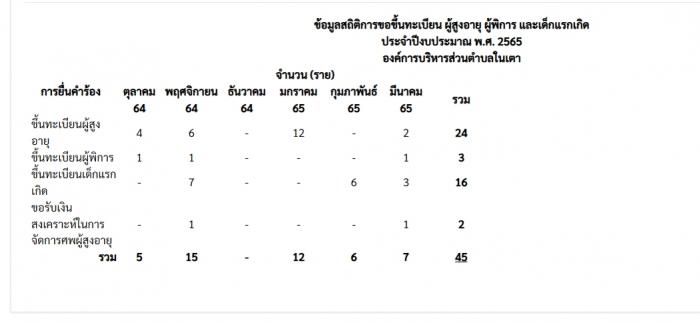 สถิติการขอขึ้นทะเบียน ผู้สูงอายุ ผู้พิการ และเด็กแรกเกิด