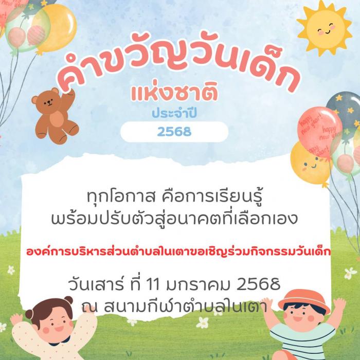 องค์การบริหารส่วนตำบลในเตา ขอเชิญน้องๆ หนูๆ มาร่วมงานวันเด็กแห่งชาติ ประจำปี 2568