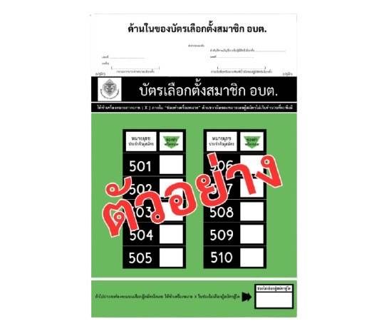 สีบัตรเลือกตั้งสมาชิกสภาองค์การบริหารส่วนตำบลและนายกองค์การบริหารส่วนตำบล บัตรสีชมพู เลือกนายก บัตรสีเขียว เลือกสมาชิก